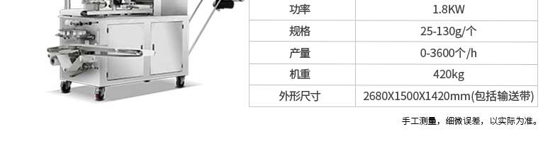 名稱86智能版包子機 電源220/380v 功率2.4kw 產(chǎn)量 尺寸1600*720*1600mm 重量350kg 規(guī)格20-150克/只 其他