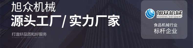 廣州旭眾食品機械有限公司是一家集科研開發(fā),生產(chǎn)設(shè)計,營銷服務(wù)為一體的現(xiàn)代化生產(chǎn)企業(yè)。現(xiàn)代化生產(chǎn)車間,精湛制造技術(shù),所產(chǎn)機械歷經(jīng)市場重重考驗,不斷贏得海內(nèi)外客戶的贊譽。