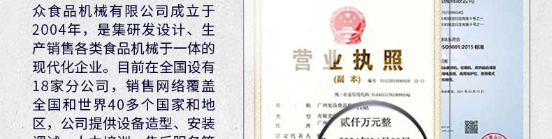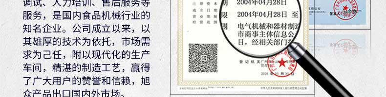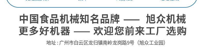 廣州旭眾食品機械有限公司是一家集科研開發(fā),生產(chǎn)設(shè)計,營銷服務(wù)為一體的現(xiàn)代化生產(chǎn)企業(yè)。現(xiàn)代化生產(chǎn)車間,精湛制造技術(shù),所產(chǎn)機械歷經(jīng)市場重重考驗,不斷贏得海內(nèi)外客戶的贊譽。