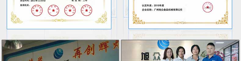 廣州旭眾食品機(jī)械有限公司是一家集科研開發(fā),生產(chǎn)設(shè)計(jì),營銷服務(wù)為一體的現(xiàn)代化生產(chǎn)企業(yè)?,F(xiàn)代化生產(chǎn)車間,精湛制造技術(shù),所產(chǎn)機(jī)械歷經(jīng)市場重重考驗(yàn),不斷贏得海內(nèi)外客戶的贊譽(yù)。