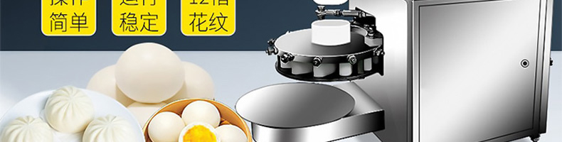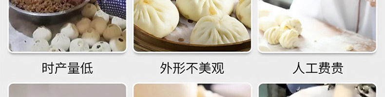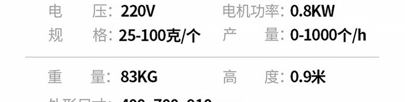 名稱XZ-510包子機(jī) 電源220V 功率電機(jī)功率:0.8KW 產(chǎn)量0-1000個(gè)/h 尺寸400X700x910mm 重量83KG 規(guī)格25-100克/個(gè) 其他高度:0.9米