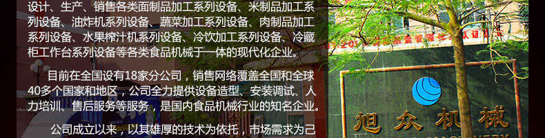 廣州旭眾食品機(jī)械有限公司是一家集科研開(kāi)發(fā),生產(chǎn)設(shè)計(jì),營(yíng)銷服務(wù)為一體的現(xiàn)代化生產(chǎn)企業(yè)?,F(xiàn)代化生產(chǎn)車間,精湛制造技術(shù),所產(chǎn)機(jī)械歷經(jīng)市場(chǎng)重重考驗(yàn),不斷贏得海內(nèi)外客戶的贊譽(yù)。