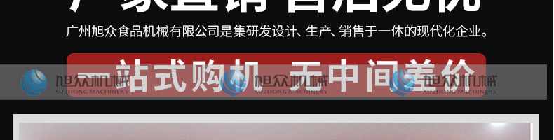 廣州旭眾食品機(jī)械有限公司是一家集科研開發(fā),生產(chǎn)設(shè)計(jì),營(yíng)銷服務(wù)為一體的現(xiàn)代化生產(chǎn)企業(yè)。現(xiàn)代化生產(chǎn)車間,精湛制造技術(shù),所產(chǎn)機(jī)械歷經(jīng)市場(chǎng)重重考驗(yàn),不斷贏得海內(nèi)外客戶的贊譽(yù)。