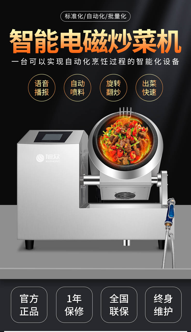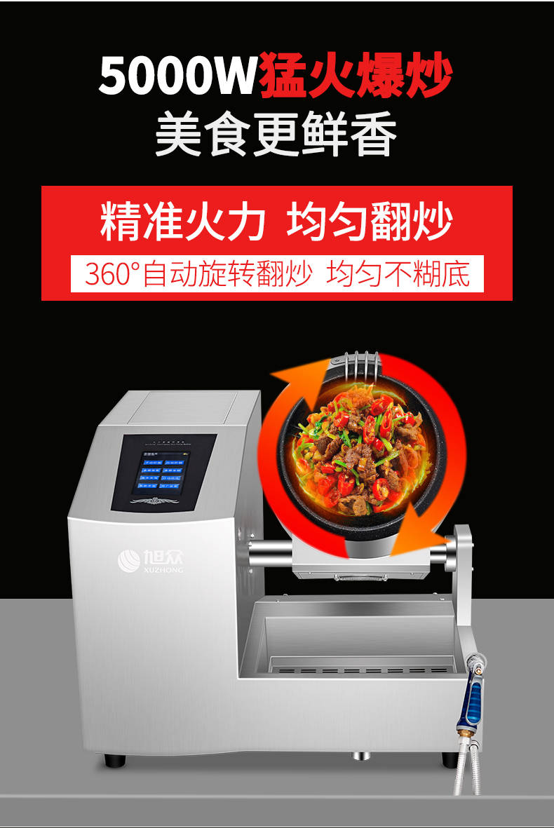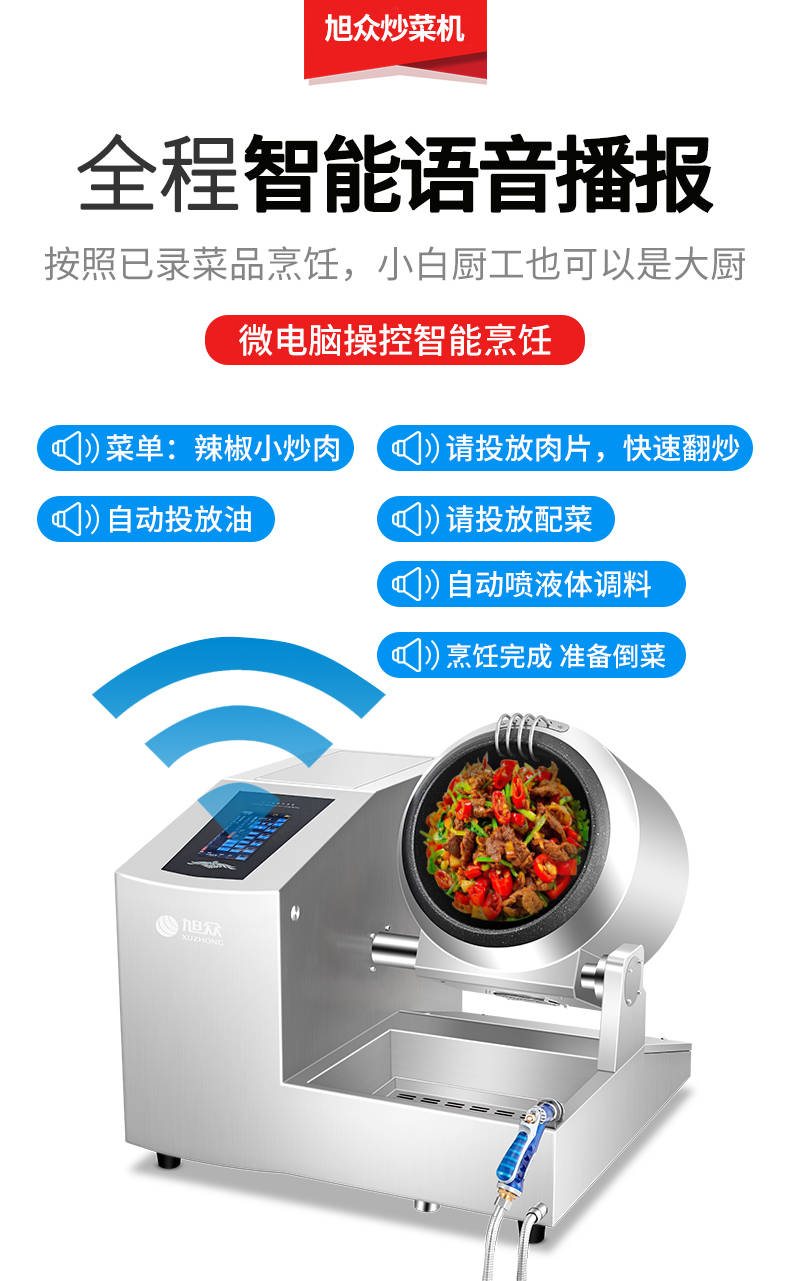XZ-30TCP臺式300智能電磁炒菜機(觸屏+噴料),可以實現(xiàn)自動化烹飪過程的智能化設(shè)備,語音播報、自動噴料、旋轉(zhuǎn)翻炒、快速出菜。實現(xiàn)自動化烹飪,新一代微電腦操控智能烹飪設(shè)備、顛覆傳統(tǒng)炒菜模式。5000W猛火爆炒美食更鮮香