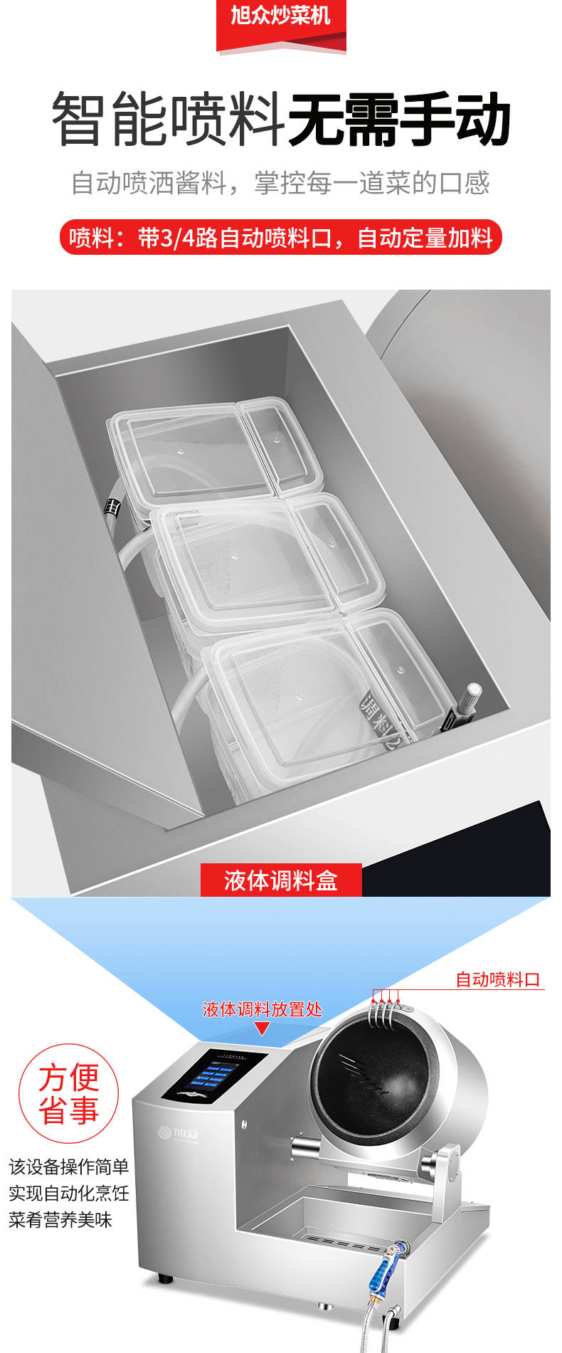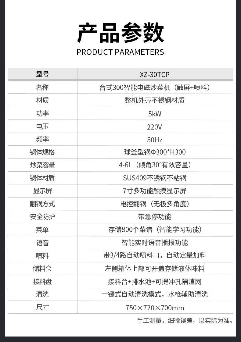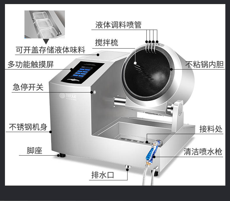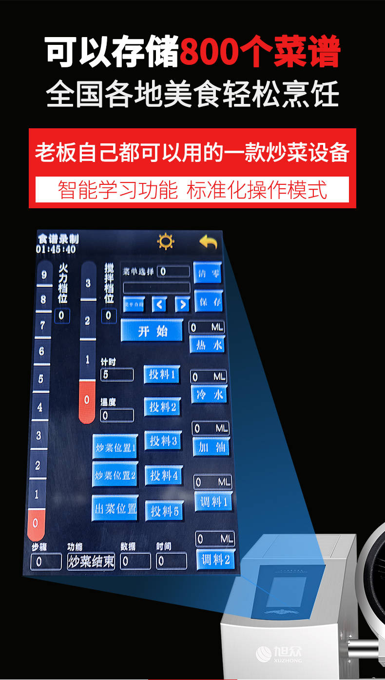 XZ-30TCP臺式300智能電磁炒菜機(觸屏+噴料),可以實現(xiàn)自動化烹飪過程的智能化設(shè)備,語音播報、自動噴料、旋轉(zhuǎn)翻炒、快速出菜。實現(xiàn)自動化烹飪,新一代微電腦操控智能烹飪設(shè)備、顛覆傳統(tǒng)炒菜模式。5000W猛火爆炒美食更鮮香