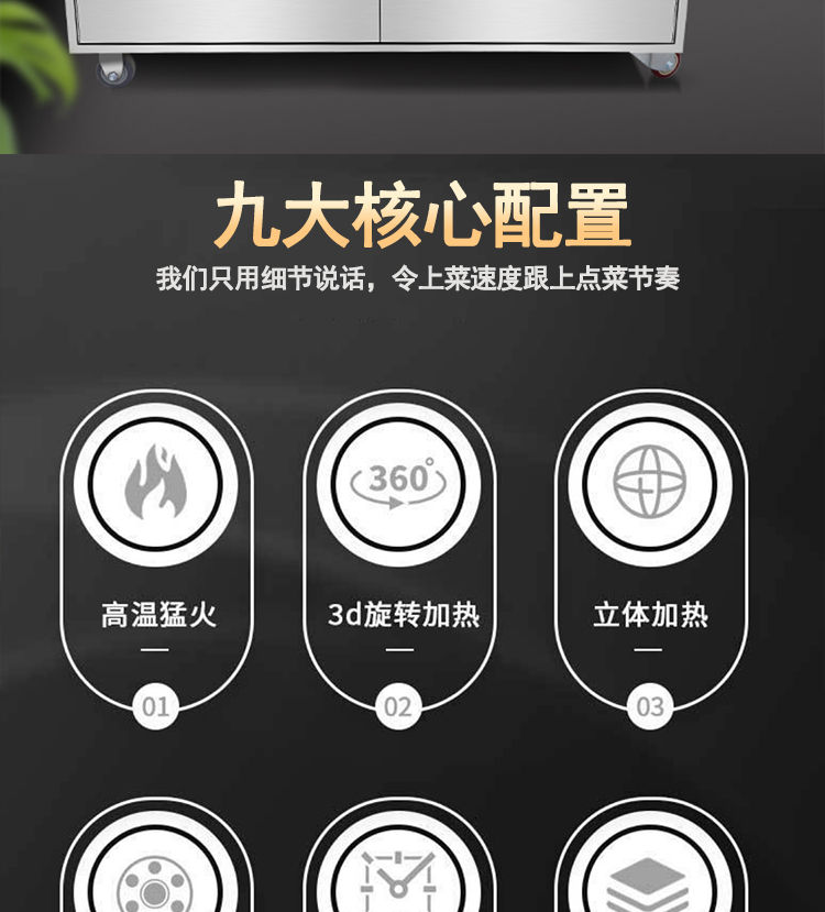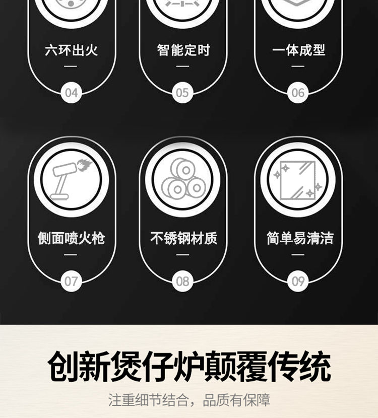 名稱智能煲仔-爐商用四頭六眼旋轉(zhuǎn)韓式猛火灶-砂鍋灶燃?xì)庠?/o> 電源請(qǐng)咨詢銷售員 功率熱負(fù)荷:67.2KW 產(chǎn)量請(qǐng)咨詢銷售員 尺寸1200*700*780mm 重量請(qǐng)咨詢銷售員 規(guī)格請(qǐng)咨詢銷售員 其他加熱方式:煤氣天然氣(預(yù)定)