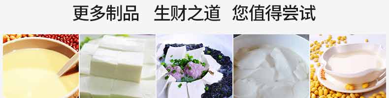 XZ-60智能豆腐機(jī),一機(jī)多用:可生產(chǎn)豆腐系列產(chǎn)品:?jiǎn)紊?,老)豆腐、多彩?腐、單色豆腐皮、多色豆腐皮、彩色豆腐干、豆?jié){、豆花等豆制品制作,還可以與其他設(shè)備和工藝配套生 產(chǎn)更多的豆制品。