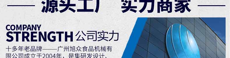 廣州旭眾食品機械有限公司是一家集科研開發(fā),生產(chǎn)設(shè)計,營銷服務為一體的現(xiàn)代化生產(chǎn)企業(yè)?,F(xiàn)代化生產(chǎn)車間,精湛制造技術(shù),所產(chǎn)機械歷經(jīng)市場重重考驗,不斷贏得海內(nèi)外客戶的贊譽。