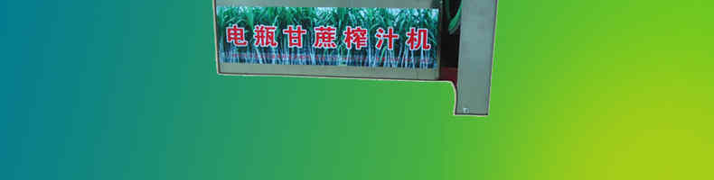 電瓶式甘庶汁機,采用全不銹鋼外殼,外形美觀,榨汁滾輪,機頭部件都經(jīng)過嚴格的防銹仿腐蝕處理,保證蔗汁符合衛(wèi)生標準,適合賓館、卡拉OK廳、水果店、冷飲店、涼茶店、車站、超市等服務(wù)行業(yè)壓榨各種甘蔗之用。