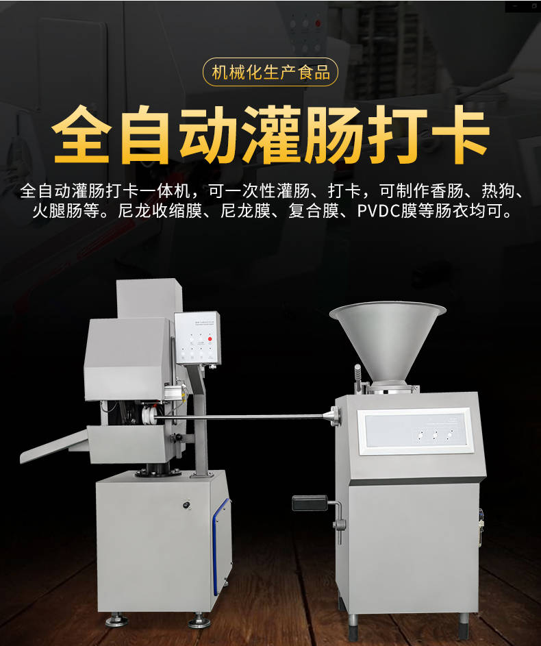 XZ-I型自動定量灌腸機(jī),使用優(yōu)質(zhì)不銹鋼制造,符合食品機(jī)械的要求,只需1人操作,特別適合中小型肉食加工廠使用,以各種畜禽類肉糜為原料的香腸、火腿腸、熱狗等天然腸衣、蛋白腸衣、煙熏腸衣等制品,可以灌制定重量單腸,也可連續(xù)灌制長腸。