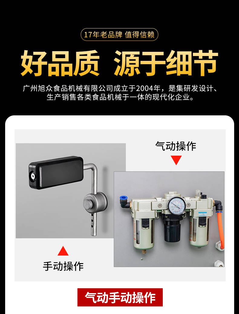 廣州旭眾食品機(jī)械有限公司是一家集科研開發(fā),生產(chǎn)設(shè)計,營銷服務(wù)為一體的現(xiàn)代化生產(chǎn)企業(yè)?,F(xiàn)代化生產(chǎn)車間,精湛制造技術(shù),所產(chǎn)機(jī)械歷經(jīng)市場重重考驗(yàn),不斷贏得海內(nèi)外客戶的贊譽(yù)。