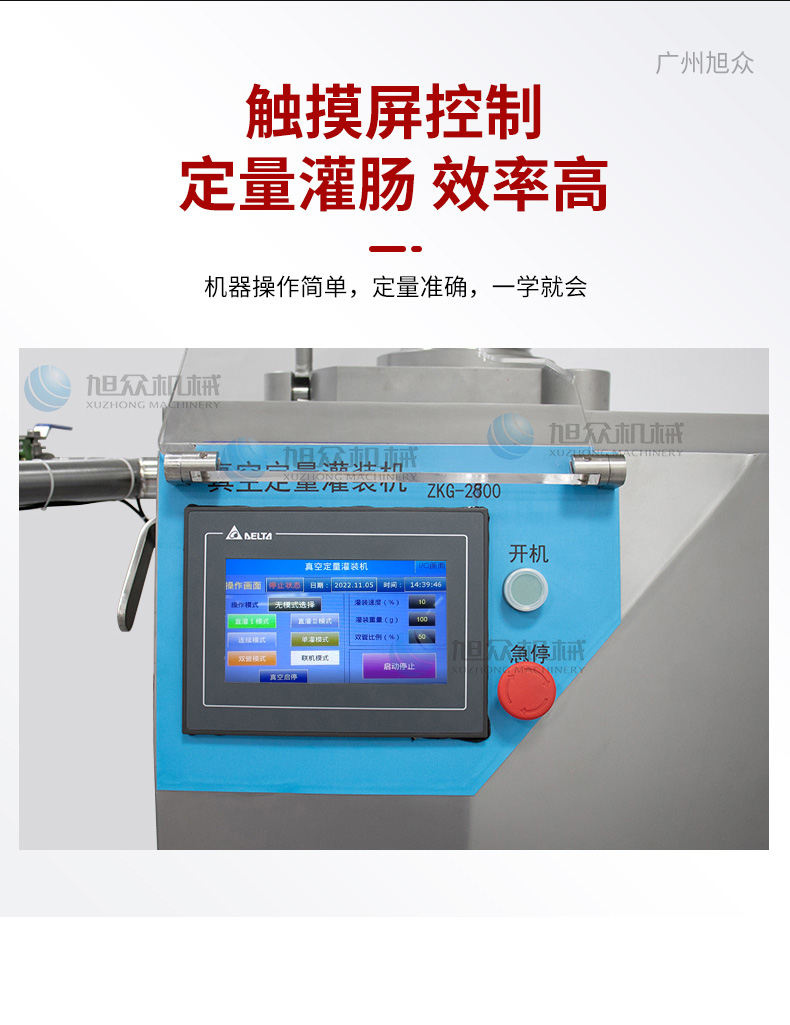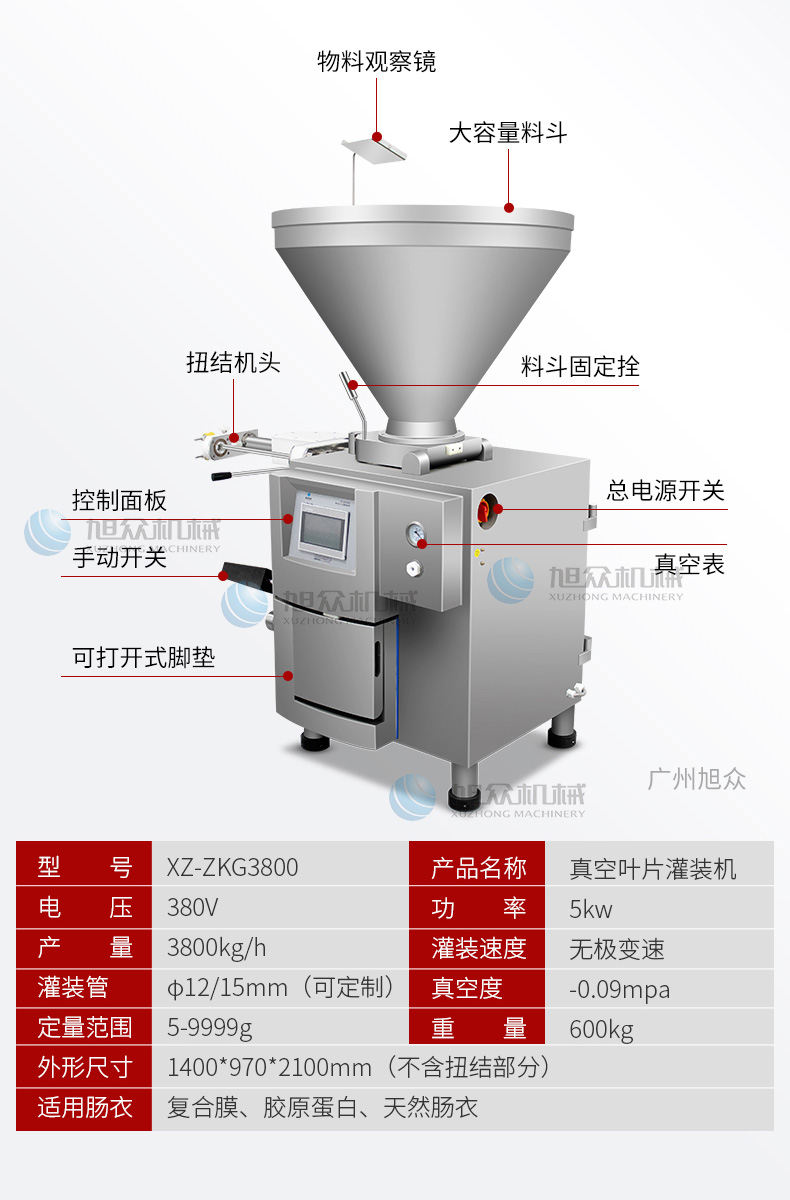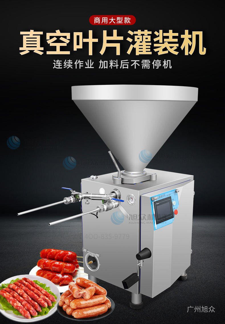 XZ-ZKG2800真空灌腸機(jī),真空葉片灌裝機(jī)連續(xù)作業(yè)加料后不需停機(jī),可灌肉粒&肉糜實用性強(qiáng)灌各種腸可做烤腸、親親腸、廣式臘腸、火鍋腸等連續(xù)灌制長腸。