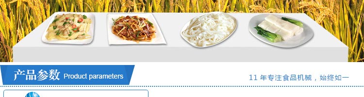 名稱SZ-HF-250高效節(jié)能河粉機 電源220/380V 功率1.1/81kw 產量100/150/200/250kg/h 尺寸主機尺寸5500*1000*1050mm 外形尺寸5600*1200*1500mm 重量500kg 規(guī)格粉條寬度mm:4/6/8/10 其他