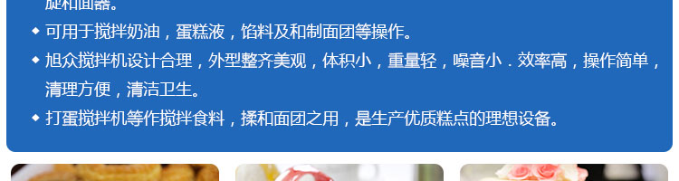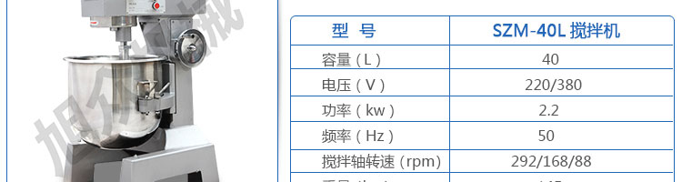 SZM-40、50、60攪拌機系列,可用于攪拌奶油、蛋糕液、餡料及和制面團(tuán)等操作。打蛋攪拌機等作攪拌食料、揉和面團(tuán)之用,是生產(chǎn)優(yōu)質(zhì)糕點的理想設(shè)備,適用于酒店、飯店、學(xué)校部門、面包屋以及食品廠家。