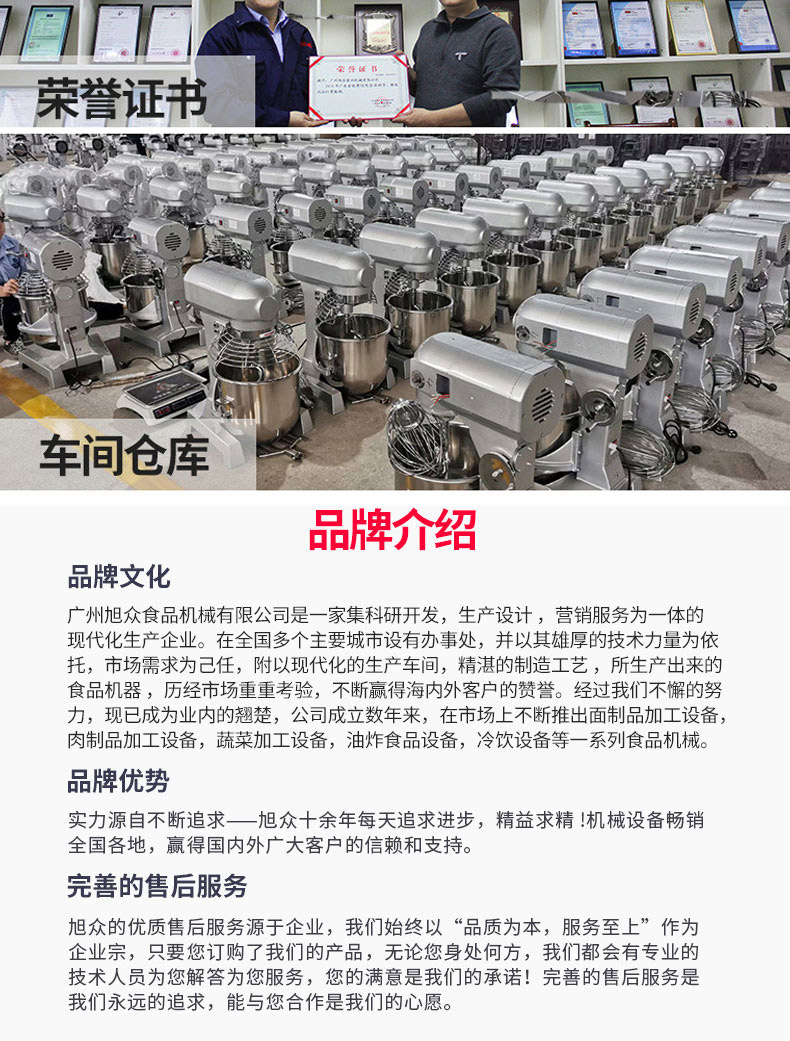 廣州旭眾食品機(jī)械有限公司是一家集科研開發(fā),生產(chǎn)設(shè)計(jì),營銷服務(wù)為一體的現(xiàn)代化生產(chǎn)企業(yè)。現(xiàn)代化生產(chǎn)車間,精湛制造技術(shù),所產(chǎn)機(jī)械歷經(jīng)市場重重考驗(yàn),不斷贏得海內(nèi)外客戶的贊譽(yù)。