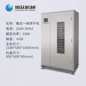 名稱箱式一體果蔬烘干機 電源220V-50HZ 功率1KW 產(chǎn)量聯(lián)系銷售員 尺寸1180*680*1800(mm托盤尺寸800*600*40(mm) 重量153KG 規(guī)格聯(lián)系銷售員 其他噪音:≤60主機