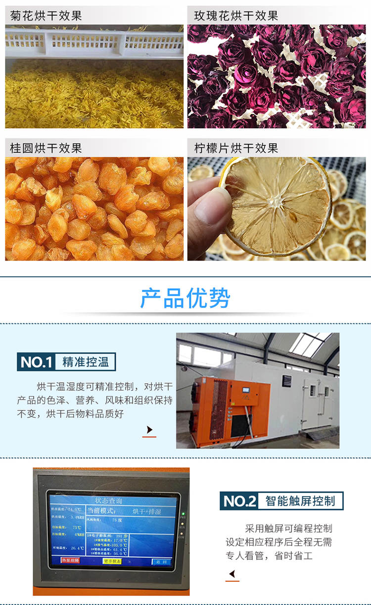 030S-T-KD06空氣能烘干機(jī),可編程調(diào)制烘干過程,精準(zhǔn)控制溫濕度,不受天氣限制可全天候24小時(shí)運(yùn)行。干凈衛(wèi)生,密閉式烘干房設(shè)計(jì)不與外界污濁空氣接觸,保證干燥物料烘干品質(zhì)。高效節(jié)能,不用專人看守,可實(shí)現(xiàn)一人同時(shí)管理多間烘房減少人工費(fèi)用