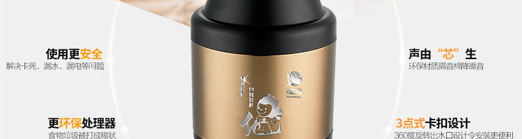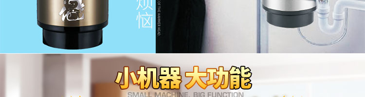 ACLQ56-廚房垃圾處理器,該機器是靠內部結構、零件組合達到處理垃圾的效果,通過碾、壓、擠、磨等系統(tǒng)的處理,在十幾秒內安全將食物垃圾處理成小于3毫米的顆粒,隨著水流排入下水道,使用十分安全。