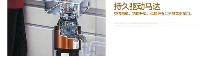 DCLQ38-廚房垃圾處理器,該機(jī)擁有獨(dú)特的粉碎功能,使所有垃圾研磨吸毒真正低于3毫米,用戶不用為管道堵塞而煩惱,粉碎后粗、細(xì)兩種垃圾通過濾孔自動(dòng)分離,成漿狀的細(xì)垃圾隨水流流入管道,粗的垃圾會(huì)稍停留在研磨倉繼續(xù)粉碎,形成粉末狀后,再隨水流流入管道,客戶可以放心使用。