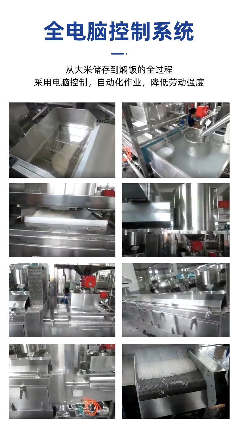 全自動(dòng)蒸汽型米飯生產(chǎn)線,全電腦控制系統(tǒng),從大米儲(chǔ)存到燜飯的全過(guò)程采用電腦控制,自動(dòng)化作業(yè),降低勞動(dòng)強(qiáng)度。實(shí)現(xiàn)全自動(dòng)生產(chǎn),多功能,一機(jī)多用,可以用于在蒸制各種食物實(shí)現(xiàn)全自動(dòng)生產(chǎn),無(wú)需人工服務(wù)。