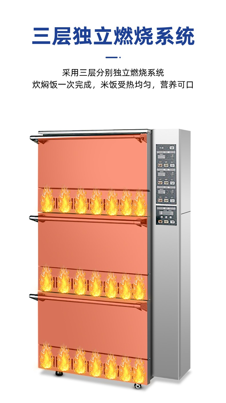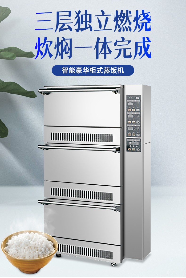立式米飯機(jī),主要結(jié)構(gòu):主要由全不銹鋼柜體、上下三層結(jié)構(gòu)加原鋁鎂合金模鑄鍋體、微電腦自動(dòng)控制系統(tǒng)燃燒系統(tǒng)、熄火保護(hù)系統(tǒng)等組成。適用對象:主要用于生產(chǎn)加工高品質(zhì)米飯的壽司店、高端酒店西餐廚房、茶餐廳以及高端的快餐門店等
