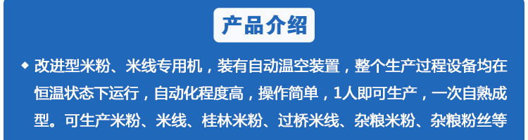 SZ-350多功能米粉機,生產(chǎn)多樣性可生產(chǎn)米粉、米線、粉絲、粉條、、年糕、玉米面條、各種雜糧粉絲、各種面條、雜糧面條、彩色面條以及以紅薯、玉米、大豆、蠶豆等制成淀粉為原料的等多種食品而且每種食品厚薄、粗細等規(guī)格可根據(jù)需要任意調(diào)整。