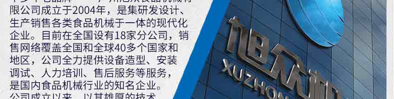 廣州旭眾食品機(jī)械有限公司是一家集科研開(kāi)發(fā),生產(chǎn)設(shè)計(jì),營(yíng)銷(xiāo)服務(wù)為一體的現(xiàn)代化生產(chǎn)企業(yè)。現(xiàn)代化生產(chǎn)車(chē)間,精湛制造技術(shù),所產(chǎn)機(jī)械歷經(jīng)市場(chǎng)重重考驗(yàn),不斷贏得海內(nèi)外客戶(hù)的贊譽(yù)。