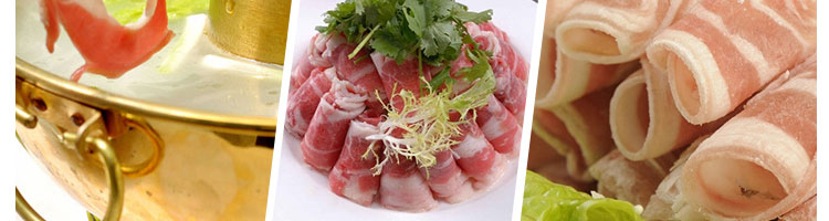 臺式全自動切片機,適合切無骨肉類和其他類似榨菜帶有彈性的食物,把原材料肉切成肉片,并可自動成卷狀??汕信H馄?、羊肉片等