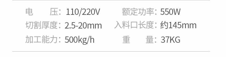 名稱XZ-QX320-切肉機(jī) 電源110/220V 功率0.55kw 產(chǎn)量250kg/h 尺寸450*320*430mm 重量33kg 規(guī)格 其他