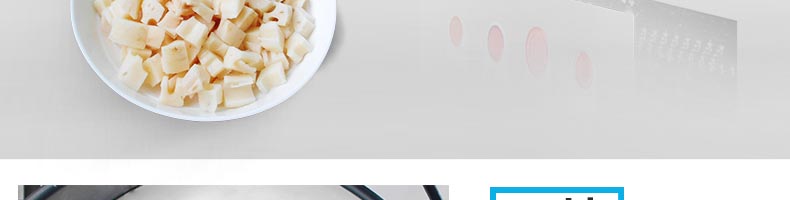 名稱XZ-680A多功能切菜機(jī) 電源220/380V(見(jiàn)機(jī)器銘牌) 功率1.3kw 產(chǎn)量300-1000千克/小時(shí) 尺寸1220*530*1280mm 重量140kg 規(guī)格標(biāo)配刀具尺寸:切絲:3mm,切片:3mm,切丁:10*10mm。可選的刀具尺寸:切絲:4、5、6mm 其他
