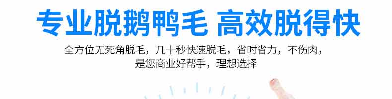 鵝鴨型脫毛機(jī),本機(jī)用于雞、鴨、鵝宰殺后的自動脫毛,還可用于脫姜皮、脫馬鈴薯皮、脫魚鱗等農(nóng)產(chǎn)品。本機(jī)操作簡單,省力、省時間、工作效率相當(dāng)于十多個人的手工勞動。