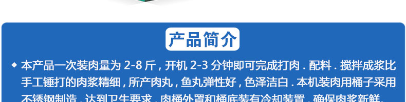 名稱SZ-28型高速肉丸打漿機(jī) 電源380V 功率5.5KW 產(chǎn)量10kg/次 尺寸760*400*850mm 重量130KG 規(guī)格 其他