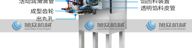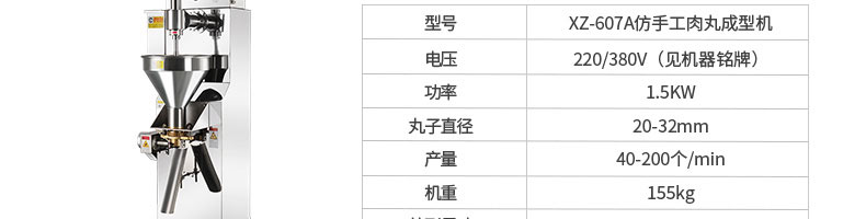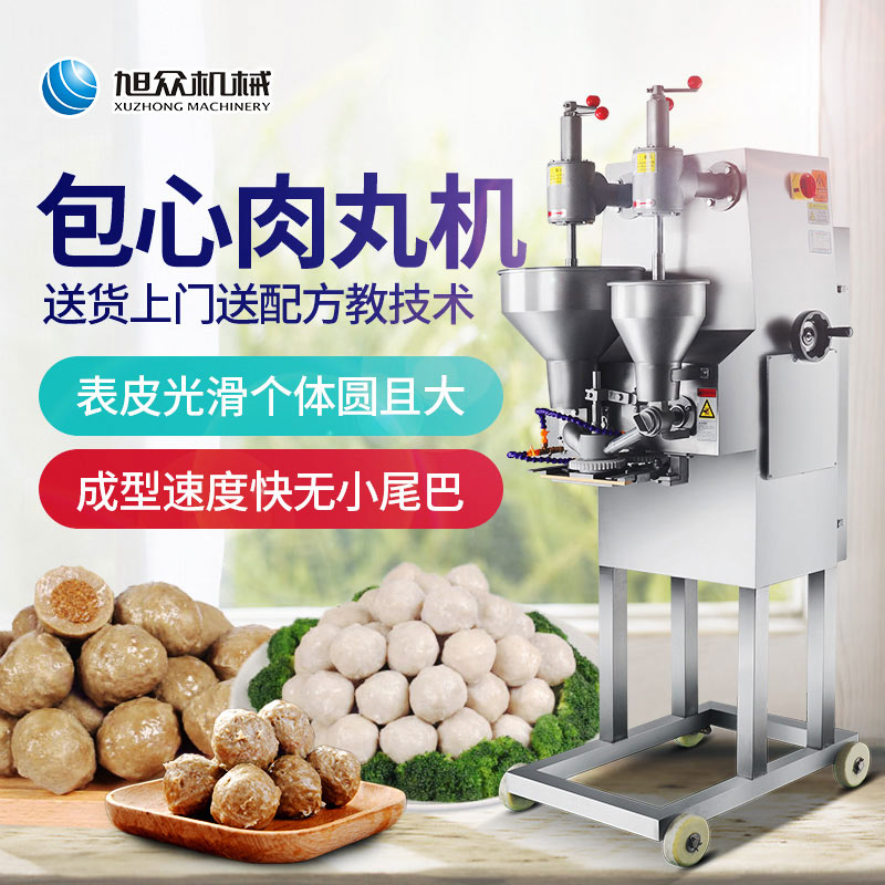 名稱XZ-609包餡肉丸機 電源220/380v 功率1.5kw 產(chǎn)量200-300個/min 尺寸730*540*1780mm 重量250kg 規(guī)格丸子直徑:28-36mm 其他