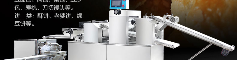名稱xz-15B二段酥餅機(jī) 電源220/380V(見機(jī)器名牌) 功率2.5kw 產(chǎn)量0-5000個(gè)/小時(shí) 尺寸主機(jī)2950*705*1290mm,成型機(jī)1550*800*820mm,出餡機(jī)870*4 重量260+110+170kg 規(guī)格10-150克/個(gè) 其他