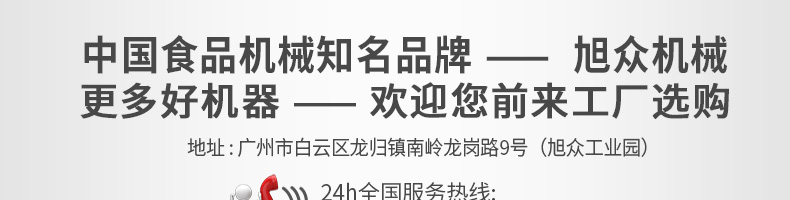 廣州旭眾食品機械有限公司是一家集科研開發(fā),生產(chǎn)設(shè)計,營銷服務(wù)為一體的現(xiàn)代化生產(chǎn)企業(yè)。現(xiàn)代化生產(chǎn)車間,精湛制造技術(shù),所產(chǎn)機械歷經(jīng)市場重重考驗,不斷贏得海內(nèi)外客戶的贊譽。