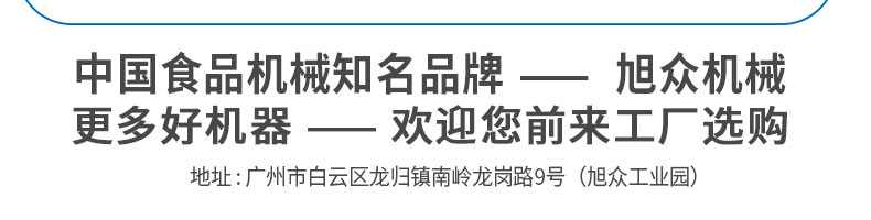 廣州旭眾食品機(jī)械有限公司是一家集科研開(kāi)發(fā),生產(chǎn)設(shè)計(jì),營(yíng)銷服務(wù)為一體的現(xiàn)代化生產(chǎn)企業(yè)?,F(xiàn)代化生產(chǎn)車間,精湛制造技術(shù),所產(chǎn)機(jī)械歷經(jīng)市場(chǎng)重重考驗(yàn),不斷贏得海內(nèi)外客戶的贊譽(yù)。