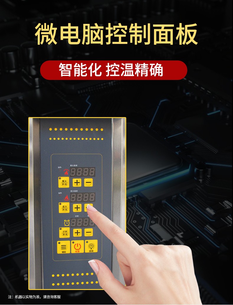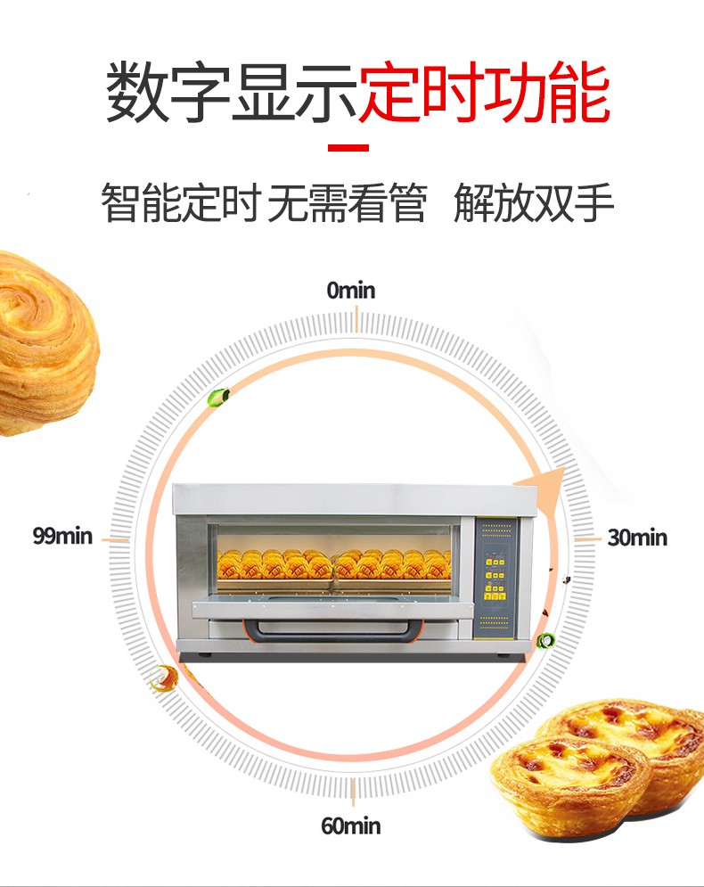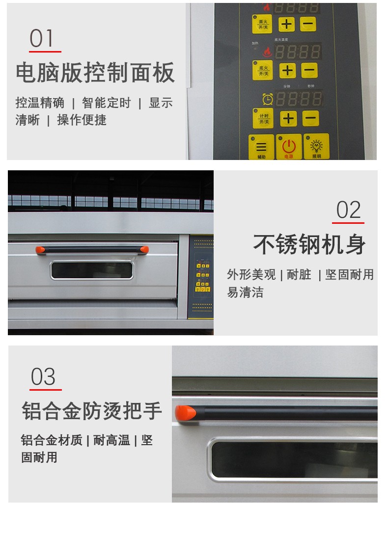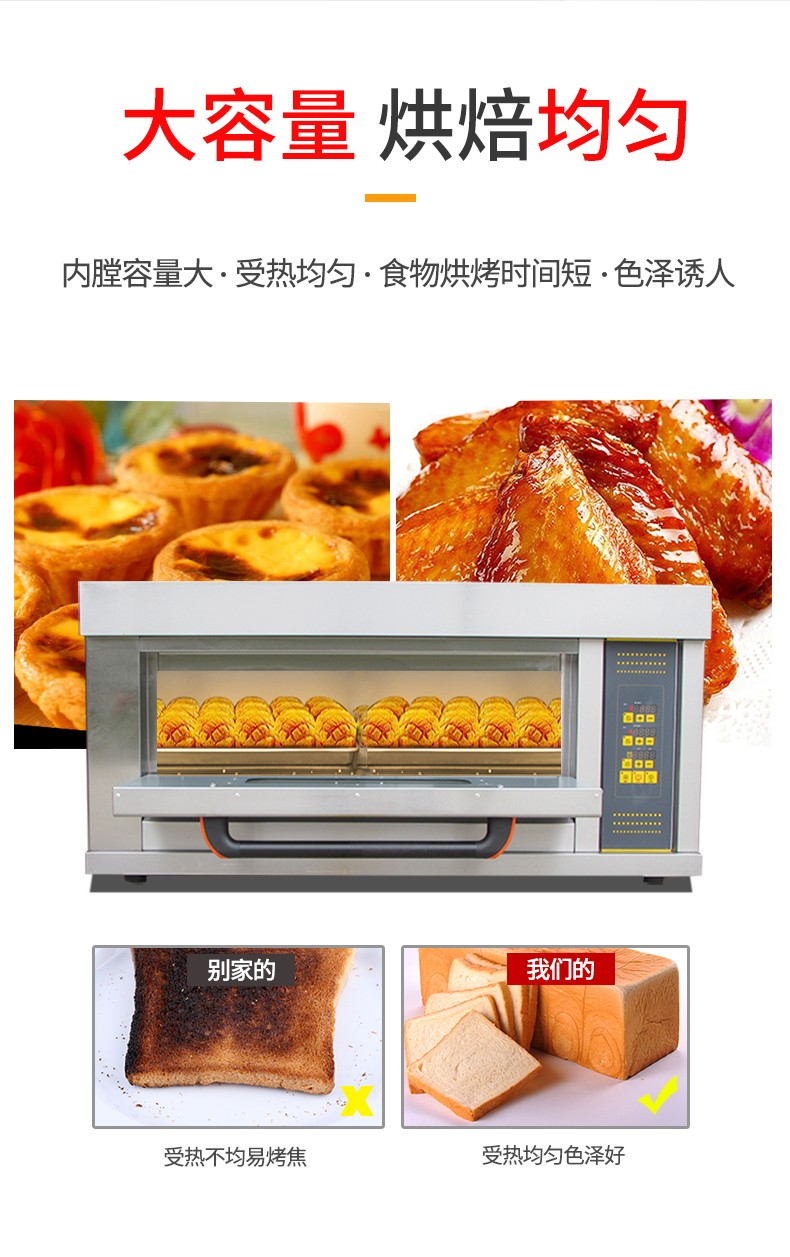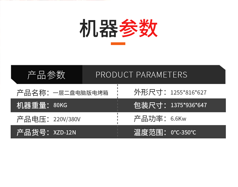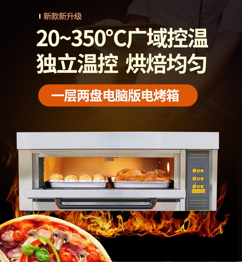 名稱一層二盤電腦版電烤箱 電源220/380V 功率6.6Kw 產(chǎn)量 尺寸1255*816*627mm 重量80KG 規(guī)格一層兩盤電腦版 其他