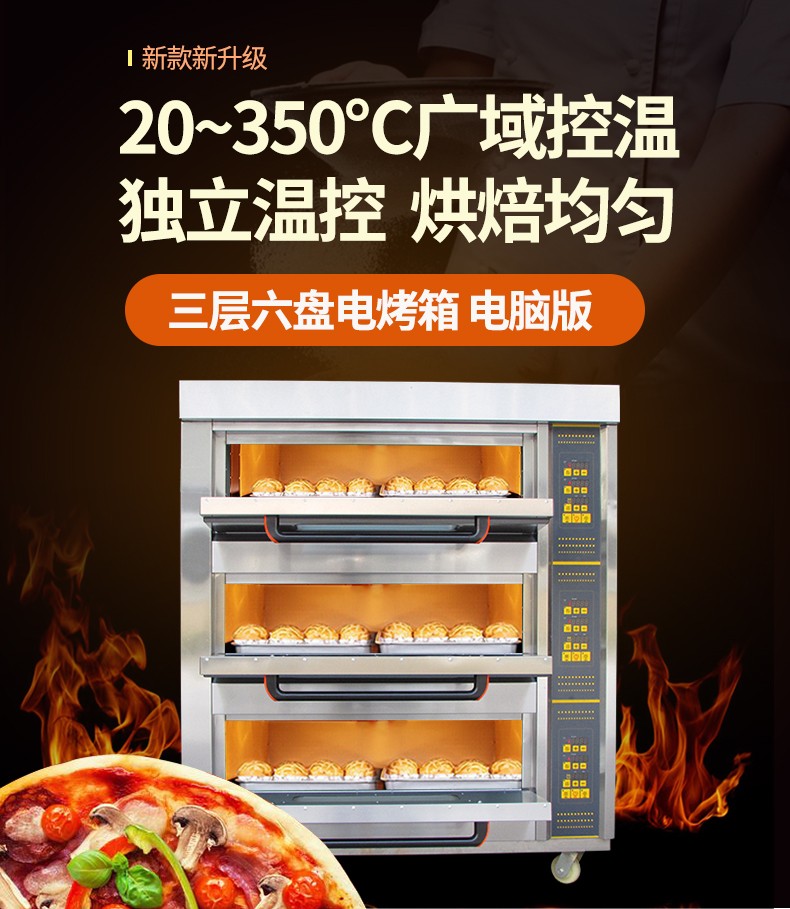 名稱三層六盤電腦版電烤箱 電源380V 功率19.8Kw 產(chǎn)量 尺寸1255*816*1455 mm 重量240KG 規(guī)格三層六盤 其他