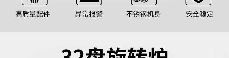 熱風(fēng)旋轉(zhuǎn)爐系列,多項(xiàng)核心技術(shù)滿足您的需求大型熱風(fēng)旋轉(zhuǎn)爐,雙風(fēng)機(jī)設(shè)計(jì),出口品質(zhì),準(zhǔn)確調(diào)控,操作簡(jiǎn)單。32盤旋轉(zhuǎn)爐大容量熱風(fēng)旋轉(zhuǎn)爐,爐門釆用緊扣工藝,密封性更強(qiáng),適合商用。