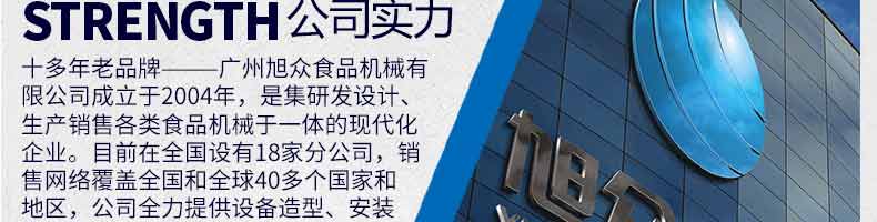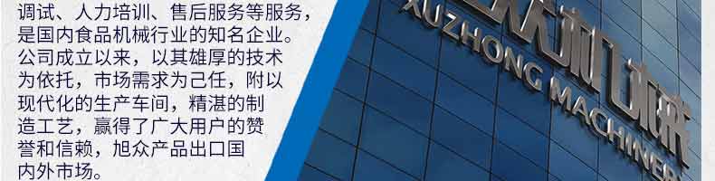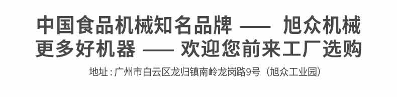 廣州旭眾食品機(jī)械有限公司是一家集科研開發(fā),生產(chǎn)設(shè)計(jì),營銷服務(wù)為一體的現(xiàn)代化生產(chǎn)企業(yè)?,F(xiàn)代化生產(chǎn)車間,精湛制造技術(shù),所產(chǎn)機(jī)械歷經(jīng)市場(chǎng)重重考驗(yàn),不斷贏得海內(nèi)外客戶的贊譽(yù)。