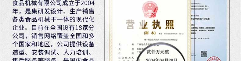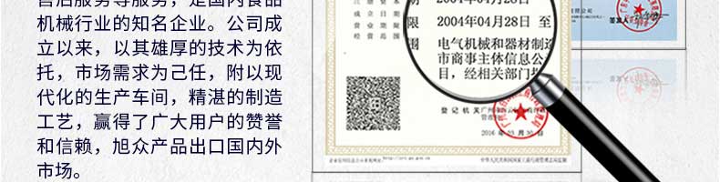 廣州旭眾食品機(jī)械有限公司是一家集科研開發(fā),生產(chǎn)設(shè)計(jì),營銷服務(wù)為一體的現(xiàn)代化生產(chǎn)企業(yè)?,F(xiàn)代化生產(chǎn)車間,精湛制造技術(shù),所產(chǎn)機(jī)械歷經(jīng)市場重重考驗(yàn),不斷贏得海內(nèi)外客戶的贊譽(yù)。