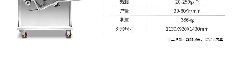 名稱XZ-68月餅包餡機(jī) 電源220/380V 功率2.5KW 產(chǎn)量各型號(hào)不同,請(qǐng)咨詢銷售員 尺寸1200X930×1355mm 重量450kg 規(guī)格各型號(hào)不同,請(qǐng)咨詢銷售員 其他