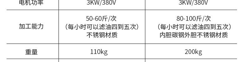 名稱離心濾油機 電源 功率3kw/380V 產(chǎn)量50-60斤/次,80-100斤/次 尺寸800×800×900mm、900×700×1000mm 重量110KG、200KG 規(guī)格 其他