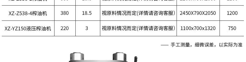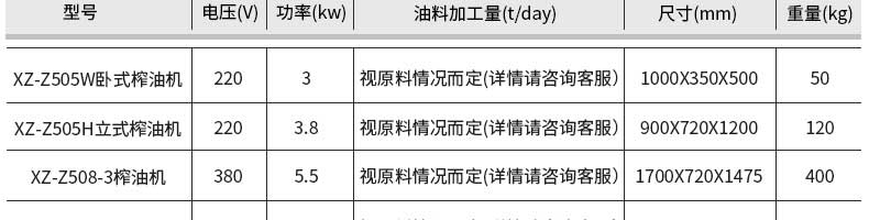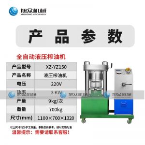 名稱XZ-YZ150型液壓榨油機(jī) 電源220v 功率3kw 產(chǎn)量9kg/次 尺寸1100*700*1320mm 重量700kg 規(guī)格 其他