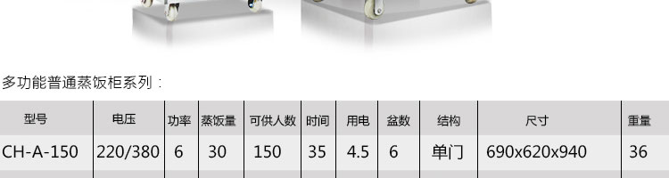 CH-A多功能普通蒸飯柜,適用于大米、面制品、肉類、海鮮類等。深受賓館、飯店、工廠、機關(guān)食堂、部隊、大專院校等單位的歡迎。